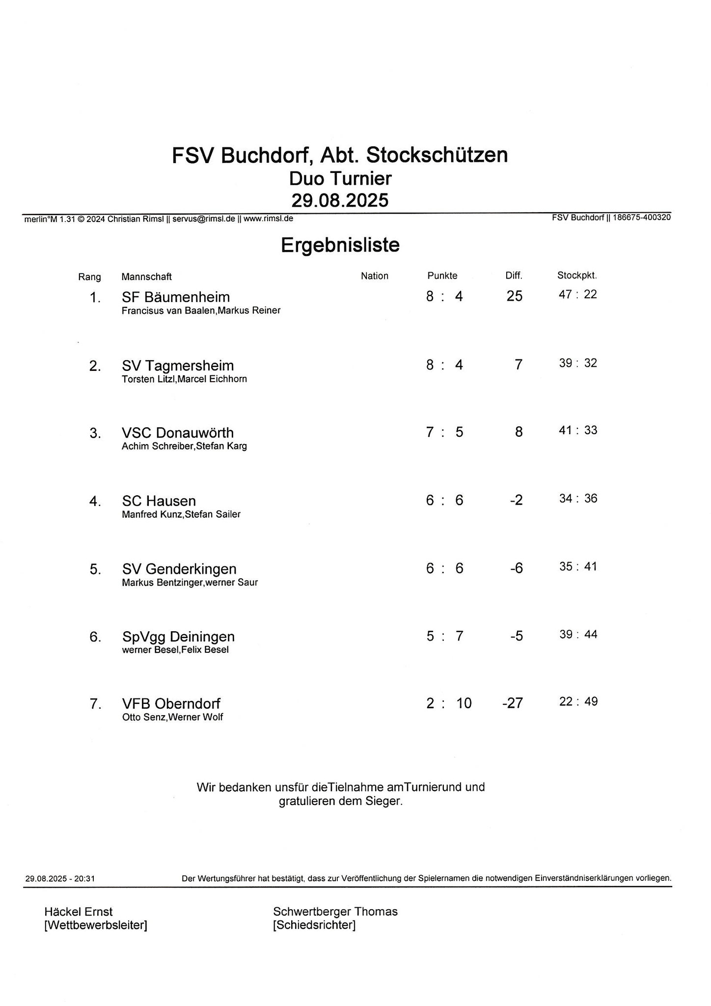 Freies DUO Turnier des FSV Buchdorf am 29. August 2025